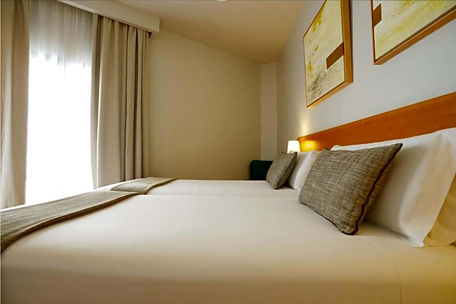 Bright and comfortable, this room features two single beds and large windows overlooking the iconic Las Ramblas. Enjoy natural light, free Wi-Fi, air conditioning, a flat-screen TV, and a private bathroom with shower and amenities. Ideal for friends or travel companions looking to soak up the city’s vibrant atmosphere.